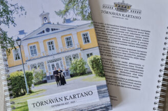 Kartanoaiheinen muistikirja myynnissä kartanolla, Kivinavetalla ja kaupungintalolla, hinta 7 euroa/kpl.