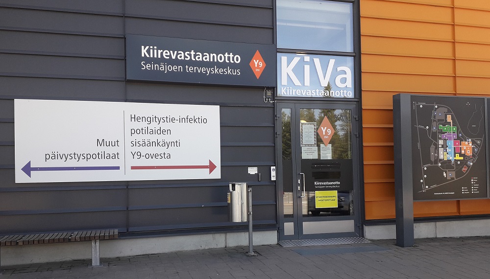 Hengitystieinfektiopotilaat tulevat sisään KiVan ovesta terveyskeskuksen infektiopolille. Potilaat käyttävät polilla suunenäsuojainta. Ilmoittautuminen kela-kortilla itseilmoittautumislaitteeseen.