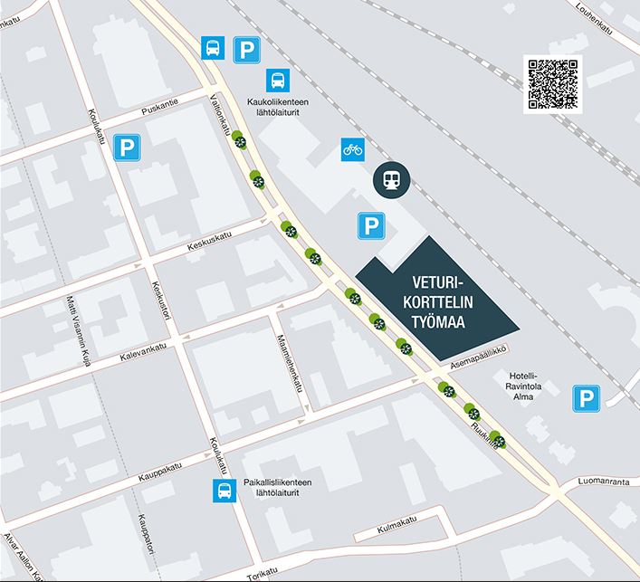 Pysäköintitalon ja hotellin Alman väliselle alueelle Asemapäällikkö-kadulle tulee myös nouto- ja jättöalue sekä muutamia parkkiruutuja. Alue valmistuu syksyllä 2025.