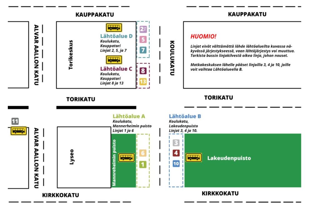 - Paikallisliikenteen bussit lähtevät Koulukadulta.