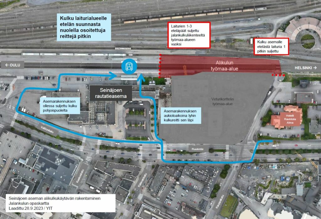 Aseman alikäytävä raiteille 1, 2 ja 3 valmistuu 2025. Siihen asti matkustajat käyttävät vanhan asemarakennuksen alikulkua.