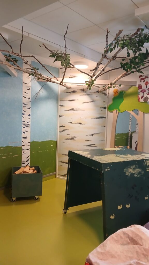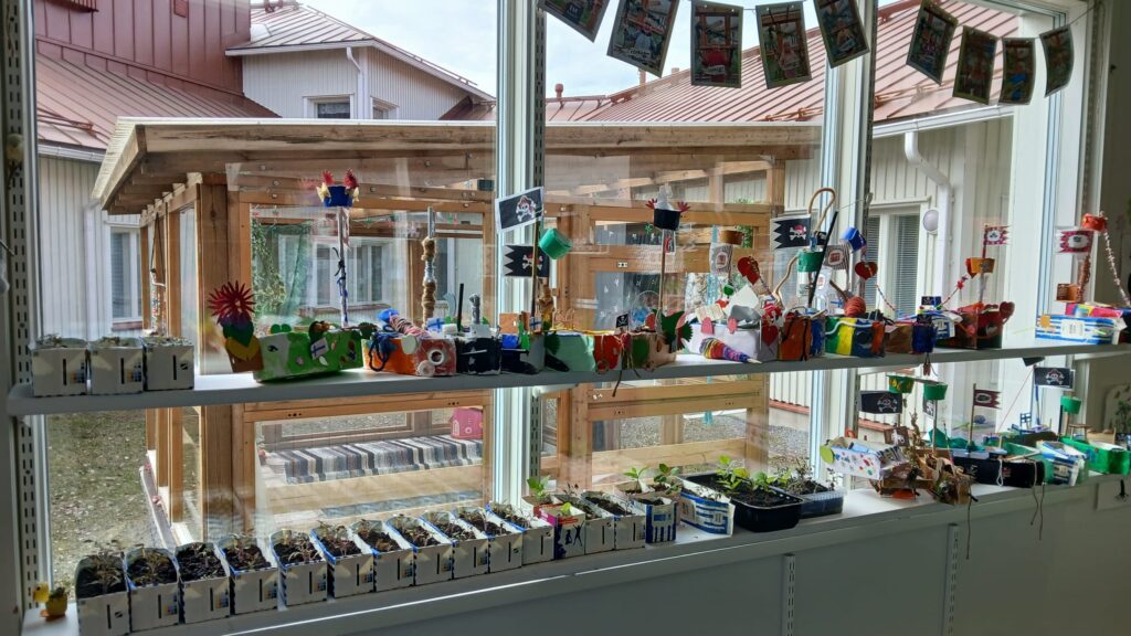 Tiloissa on käytetty luovuutta, niin henkilökunta kuin lapsetkin ovat maalanneet seiniä ja vanhoja esineitä ja huonekaluja on otettu erilaiseen uusiokäyttöön. Vain luovuus on rajana. Ikkunoilla oli itämässä uutta kasvia sisäpihan istutuslaatikoihin. Komposti oli talven jäljiltä sulamista vailla ja sadevettä kerättiin katolta talteen kasteluvedeksi.
