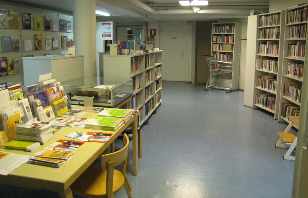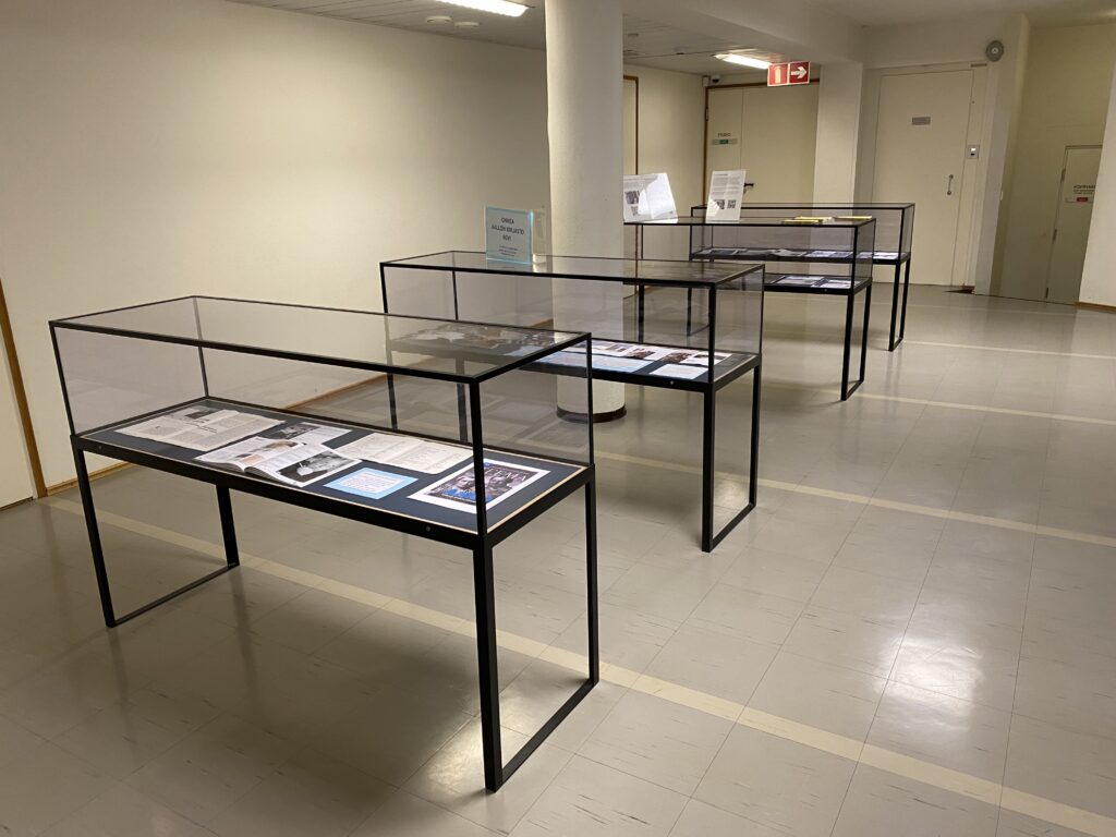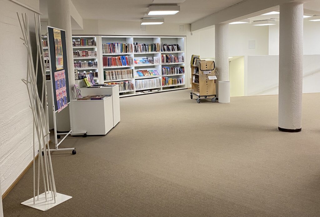 Alakerrassa saattoi tutkia käsikirjaston lehtivalikoimaa, lainata runoja ja näytelmiä ja tutustua erilaisiin esitteisiin. Nyt tilaa ei melkein usko samaksi, siellä on vain näyttelyvitriinejä. Tänä kesänä niissä on esillä Alvar Aaltoon ja hänen töihinsä liittyvää materiaalia.