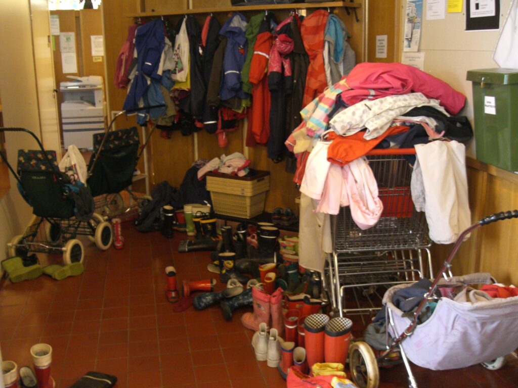 Vaikka tilaa oli vähän, kävi kirjastossa eri-ikäisten lasten ryhmiä. Välillä eteinen täyttyi vaunuista ja pienistä kumppareista ja haalareista.