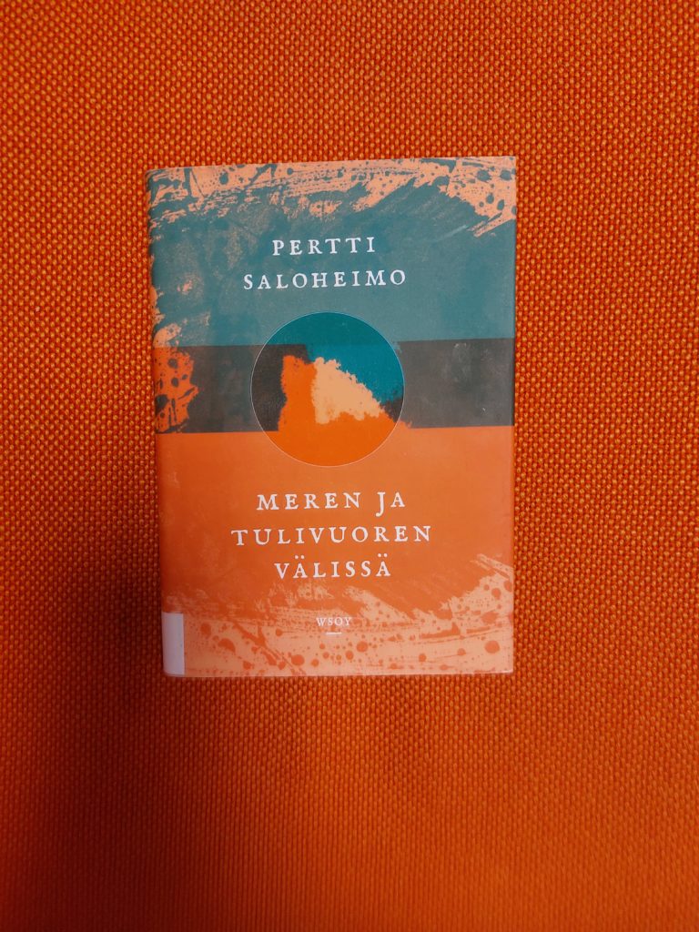 Pertti Saloheimon kirja Meren ja tulivuoren välissä alkaa siitä, kun nimettömäksi jäävä tutkija saapuu lentoveneellä kaukaiselle saarelle. Sitä ei kerrota, mistä maasta tutkija saapuu. Sitäkään ei paljasteta, missä saari sijaitsee tai mille aikakaudelle kirja sijoittuu. Tutkimuksissa on tarkoitus kartoittaa saaren lintuja, maaeläimiä ja hyönteisiä. Tutkija käy käsiksi työhön innokkaasti. Apulaiseksi ja oppaaksi hän saa paikallisen nuoren pojan.