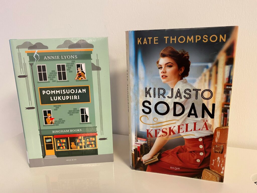 Kate Thompsonin Kirjasto sodan keskellä -romaani ilmestyi suomeksi vuonna 2023 Tuulia Tipan kääntämänä. Kirja sijoittuu vuoden 1944 Lontooseen, missä entinen lastenkirjastonhoitaja Clara Button hoitaa metrotunneleihin perustettua kirjastoa, joka palvelee tunneleissa yöpyviä.