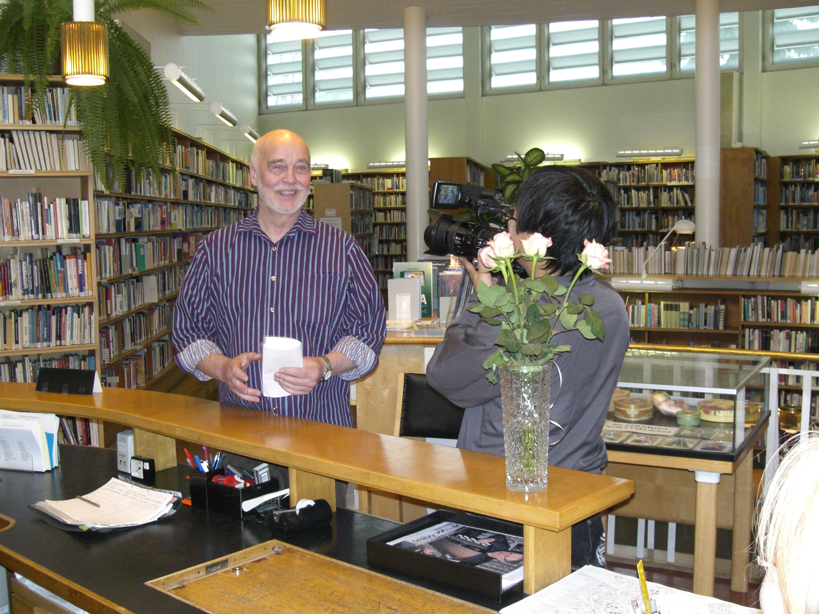 Kului pari vuotta ja sain sähköpostin taiwanilaiselta tv-ryhmältä osallistua nuorille suunnattuun, Taiwanissa suosittuun tv-dokumenttiin Suomesta nimeltään ’Follow me’. Vihjeen minusta ja kirjastosta oli antanut tuo palvelemani kiinalaisnainen. Dokumentti tehtiin ja ’päätähtenä’ olin minä, ’paras kirjastonvirkailija’. Sain sittemmin DVD:n koko sarjasta; onneksi olivat leikanneet pois kiinaksi esittämäni ’Paljon onnea vaan’!”