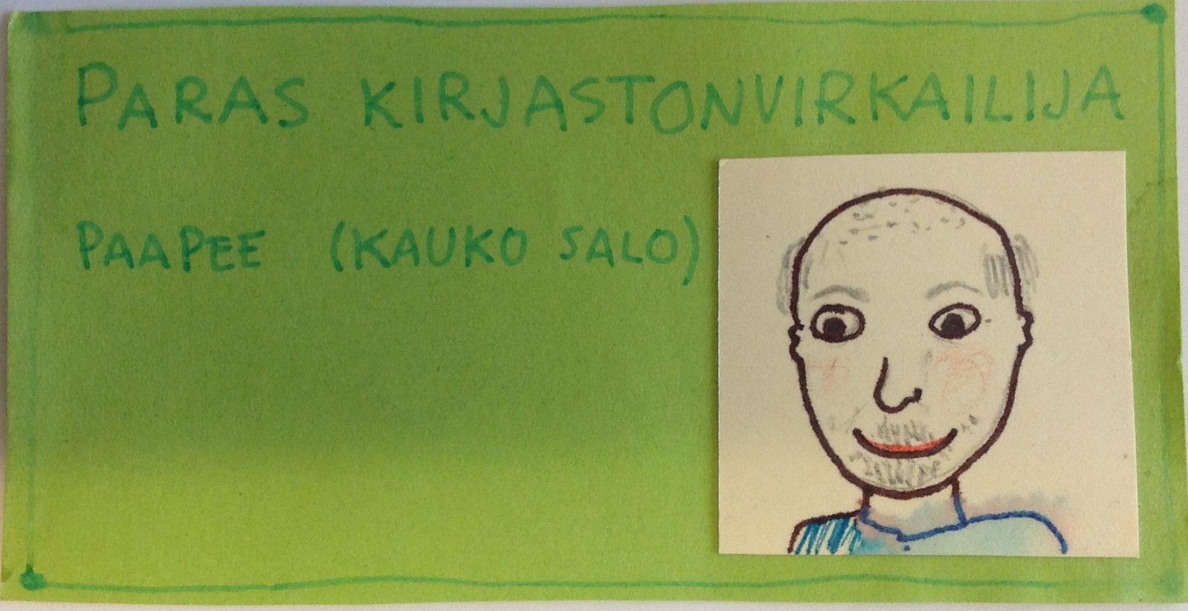 Tein kerran lainaajakortin kiinalaiselle maahanmuuttajanaiselle. Nimikyltti rinnassani oli vanhimman lastenlapseni piirtämä. Alla on kuva kyltistä. Kortin saatuaan nainen kyseli nimikyltistäni ja kiitti kortistaan ja informaatiosta.