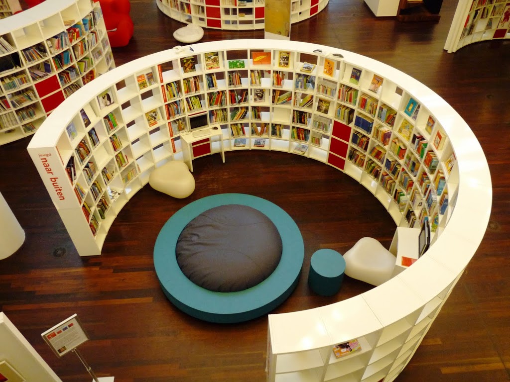 Kohteista antoisin oli ehdottomasti Amsterdamin vuonna 2007 valmistunut pääkirjasto. Kirjasto oli huiman kokoinen: 28 000 neliötä kirjastotilaa kohosi 10 kerrokseen keskeisellä paikalla rautatieaseman ja isojen museoiden lähellä. Avoimia kokoelmia oli 8 hyllykilometriä, varastoissa 24 kilometriä lisää ja asiakastyöasemia oli noin 600 kappaletta. Kirjasto oli auki seitsemänä päivänä viikossa, klo 10 – 22, ja kirjastolla oli mm. oma kirjastoteatteri, ravintola, radio, museo ja tietenkin näyttelytilaa.