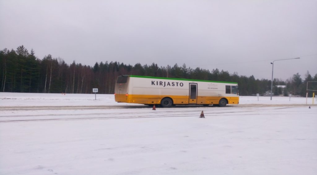 Helmikuun alussa Etelä-Pohjanmaan ja lähiseudun kirjastoautonkuljettajia oli joukolla ennakoivan ajon jatkokoulutuksessa liukkaan kelin ajoharjoitteluradalla Jalasjärvellä. Koulutuksen tavoitteena oli, että kuljettaja osaa tunnistaa tyypilliset vaaratilanteet liukkaalla kelillä ja osaa reagoida niihin.