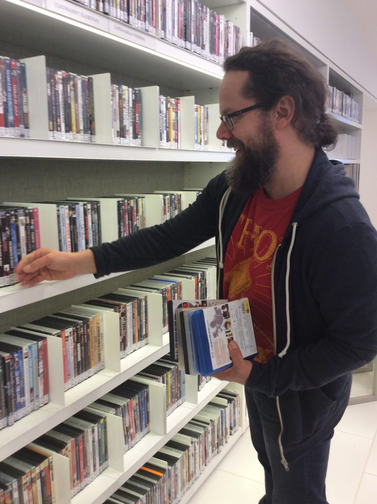 Kirjastovirkailija Jarkko Parkkinen vastaa uuden työnjaon mukaan aikuisten elokuvien hankinnasta Seinäjoen kirjastoissa. Lasten ja nuorten sekä nuorten