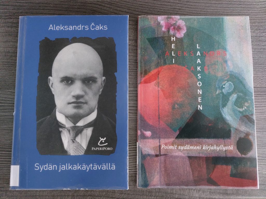 Viime vuonna tuli kuluneeksi 120 vuotta Čaksin syntymästä ja hänen runojaan julkaistiin suomeksi peräti kahden kirjan verran. Toinen kirja on vähän omaperäisempi tapaus. Monille tuttu suomalainen murrerunoilija Heli Laaksonen on viime vuosina innostunut Latviasta ja latvian kielestä. Hän on kääntänyt suomeksi Čaksin runoja ja koonnut niistä omien runojensa kanssa kirjan Poimit sydämeni kirjahyllystä, jota hän kutsuu runovuoropuheluksi. Kirjassa tosiaankin vuorottelevat Čaksin runot ja Laaksosen niihin laatimat vastaukset, myös runomuodossa.