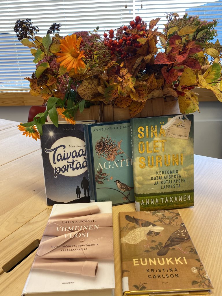 Seinäjoen pääkirjaston kirjavinkkipiirin ensimmäinen syksyn kokoontuminen osui vanhuksille omistetulle teemaviikolle. Osa vinkkauskirjoista tarjosi siksi näkökulmaa ikääntyneiden ihmisten elämään, kukin omalla tavallaan. Vinkkareina olivat tällä kertaa kirjaston työntekijöistä Pauliina Happonen ja Sirpa Pukkinen sekä kirjastoalan harjoittelija Suvi Levonen.