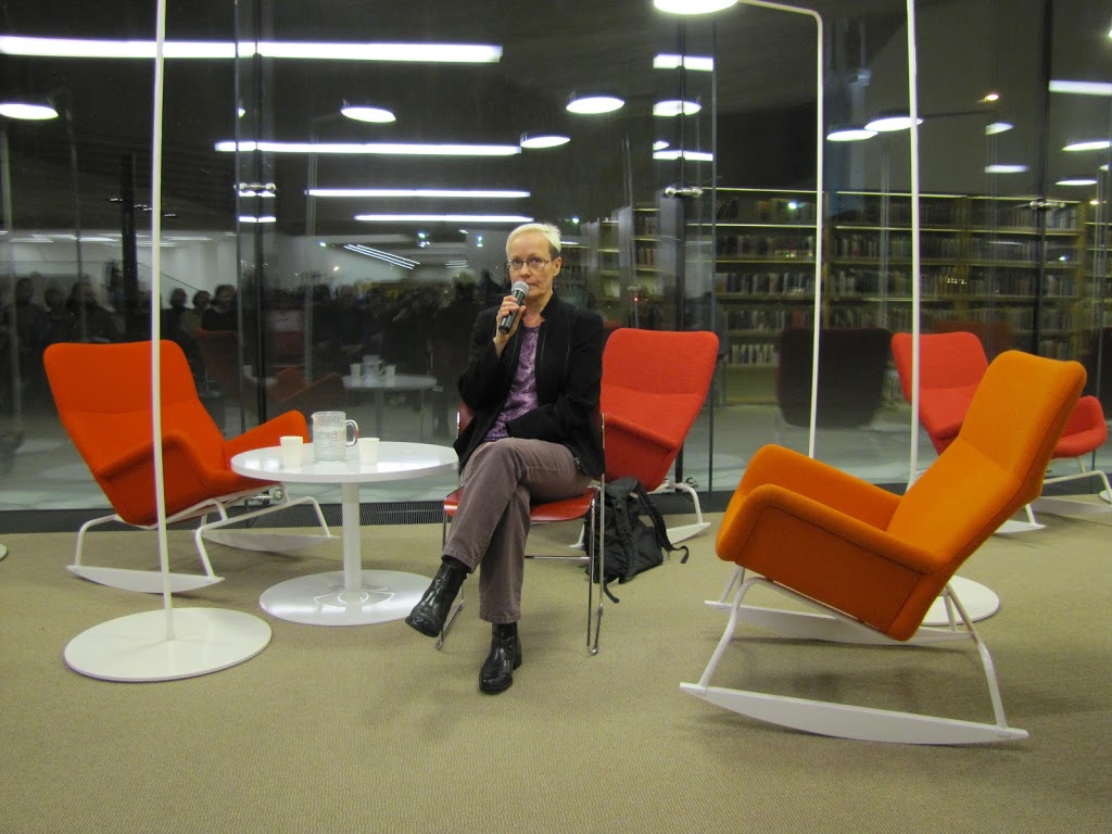 Kuudelta koittaa hieno hetki, kun saamme vieraaksi kirjailija Johanna Sinisalon. Hän juttelee kirjoistaan ja itsestään tunnin, ja sen jälkeen yleisö saa vielä esittää kysymyksiä.