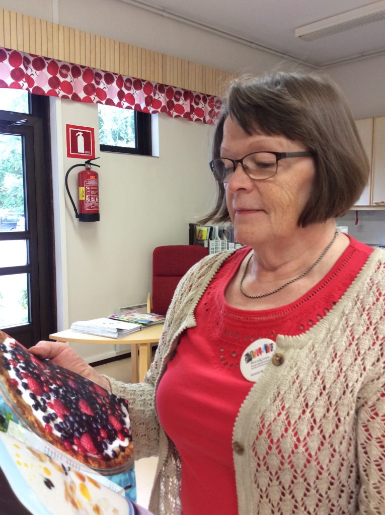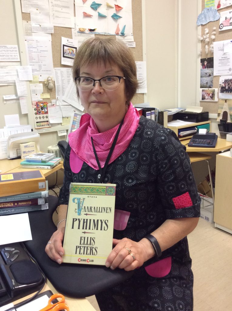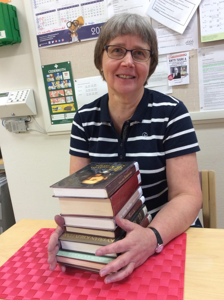 Toimistosihteeri Anneli Hakala siirtyi muista tehtävistä kirjastoon töihin kolme vuotta sitten. Hänen tehtäviinsä kuuluvat mm. asiakaspalvelu sekä kirjaston kotipalvelu. Anneli lukisi mielellään nykyistä