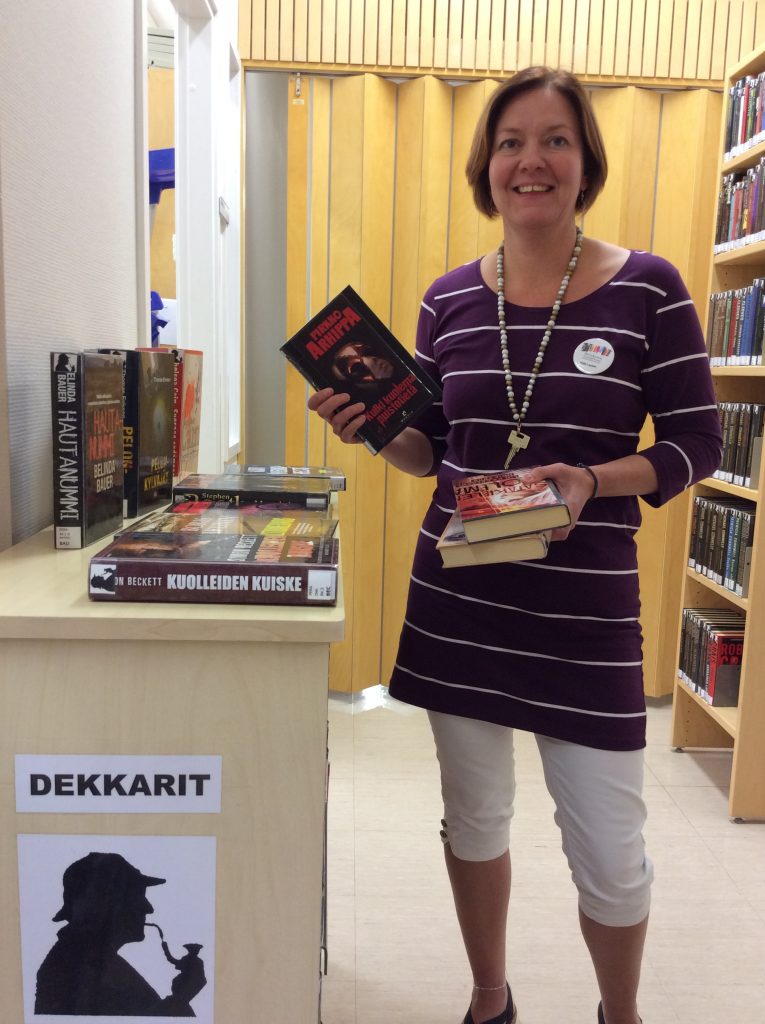 Kaija Lepistö lukee mm. pohjoismaisten naisdekkaristien tuotantoa.