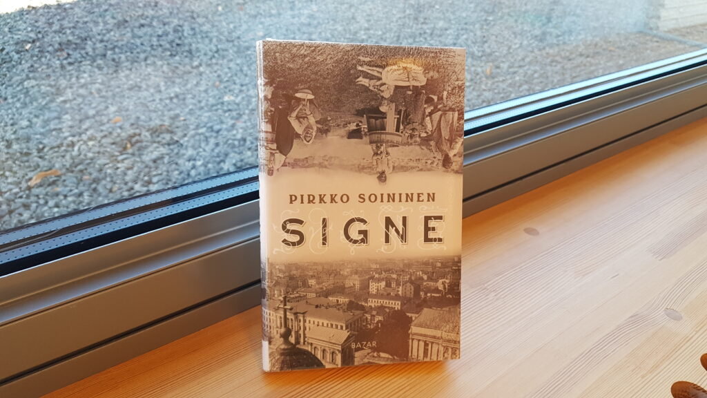 Signe-romaani on Pirkko Soinisen neljäs biofiktio suomalaisista merkittävistä naisista. Soininen piirtää Signe Branderista todentuntuisen kuvan, joka on lähteiden puuttumisen takia suureksi osaksi kuitenkin kirjailijan mielikuvituksen tuotetta. Tunnistaisikohan Signe itse itseään kirjan lehdiltä?