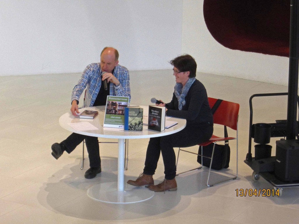 Yleisöä on ollut yhteensä 3250 kävijää. Hämmästyttävää on, että sunnuntaivieraat on suunniteltu ja toteutettu kokonaan vapaaehtoisvoimin. Palkkaa ei ole maksettu sen enempää haastattelijoille kuin haastateltavillekaan. Idea oli alun perin toimittaja Anssi Orrenmaan, ja hienosti se otti tuulta siipiensä alle ja kantoi pitkälle. Ei siis pidä paikkaansa, etteikö Suomessa enää tehtäisi asioita toisten hyväksi tai talkoiltaisi. Nyt sunnuntaivieraat kuitenkin jää tauolle. Edessä ovat vaalit ja Suomen 100-vuotisjuhlavuosi. Ne työllistävät niin toimittajia kuin kirjastolaisiakin ja tuovat uudenlaisia tapahtumia kirjastoon. Ei kuitenkaan joka sunnuntaille, ei edes joka toiselle. Siihen on nyt sopeuduttava. Onneksi toimittajat jo kuitenkin tähyävät vuoteen 2018. Silloin ehkä taas istahdetaan Lukuportaikkoon, unohdetaan edessä vaaniva arki ja annetaan kirjojen viedä. Tässä vaiheessa ei voi muuta kuin kiittää ja kumartaa. Kiitos kaikille mukana olleille toimittajille ja haastateltaville! Kiitos yleisölle!