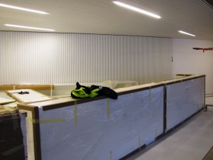 Vastaanoton tiski on vielä paketissa, mutta jo oikealle paikalle sijoitettuna.