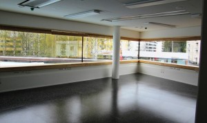 Työhuoneet toisessa kerroksessa ovat valoisia. Suurimpaan työhuoneeseen tulee kuuden ihmisen työpöydät.