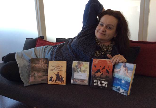 Ilo-auton kirjastovirkailija Kristiina Keski-Luoma lukee mielellään jännittäviä ja kauhuelementtejä sisältäviä kirjoja. Elokuvista suosikkeja ovat mm. lännenelokuvat.