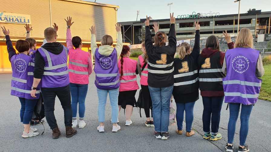 Seinäjoen ehkäisevän päihdetyön toimijat kutsuivat vanhempia mukaan turvaamaan nuorten juhlimista Solar Sound Festivaalille, jota vietettiin elokuun toisena viikonloppuna Seinäjoella. Vapaaehtoisista aikuisista ja nuorisotyön ammattilaista koostuvia partioita oli liikkeellä molempina tapahtumailtoina. Jalkautumisen tarkoituksena oli tuoda turvaa nuorten illanviettoon, olla läsnä ja apuna tarvittaessa. Yhteensä partiot kohtasivat kahden illan aikana 2970 nuorta. Nuorten kanssa juteltiin, heille tarjottiin vettä ja tarvittaessa ohjattiin avun piiriin. Nuoret suhtautuivat aikuisten läsnäoloon myönteisesti ja kiittelivät, että paikalle oli tullut aikuisia heitä varten. Vapaaehtoisten aikuisten kanssa jalkautui työntekijöitä Ehkäisevä päihdetyö EHYT ry:stä, Palveluoperaatio Saappaasta, Seinäjoen kaupungin hyvinvoinnin ja terveyden edistämisen yksiköstä sekä nuorisotyöntekijöitä Seinäjoelta, Ilmajoelta ja Kauhajoelta.