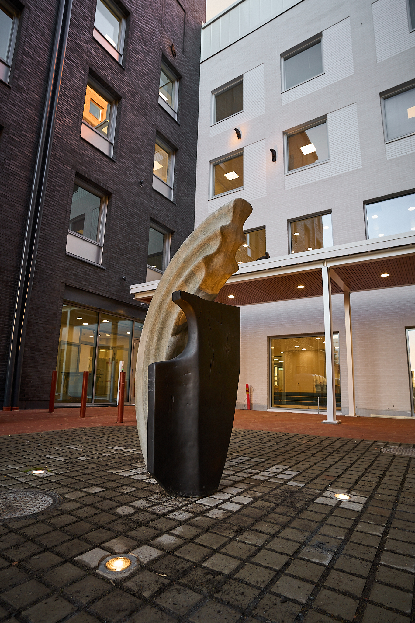 Arja Kärkkäinen’s Birthstone, located in the square in front of the Aallokko Family Service Centre, is a monument to parenthood: to the support and limits offered by family relationships and parenting. The name Birthstone refers to the living ones, living, and to the birth of life.