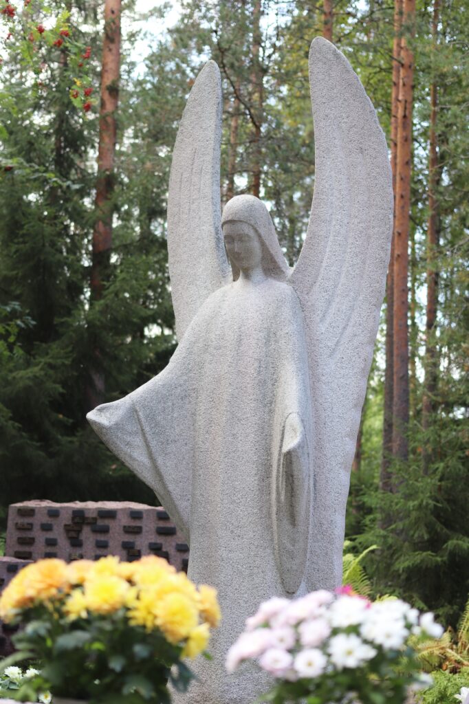 Vuonna 1984 käyttöön vihityn uurnalehdon enkelipatsaineen on suunnitellut seurakunnan puutarhurina toiminut Eero Virtaniemi. Patsas on valmistettu harmaasta graniitista ja se on 2,5 metriä korkea.