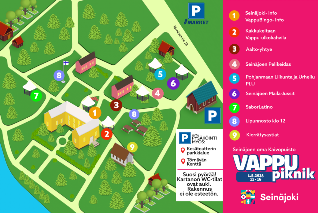 • Toimijoina mukana myös SeAMK:n opiskelijat, jotka ovat suunnitelleet vapputapahtuman sisällön sekä Grano, joka on lahjoittanut vappubingolaput.
