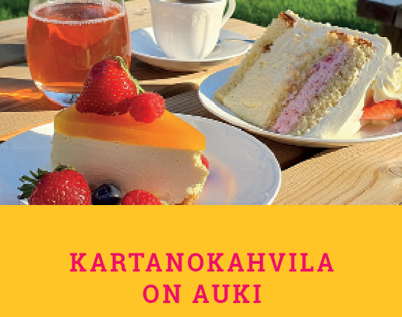 KARTANOKAHVILA ON AUKI ELOKUUSSA 17.8. SAAKKA PERJANTAISIN KLO 12-17 JA LAUANTAISIN KLO 10-16