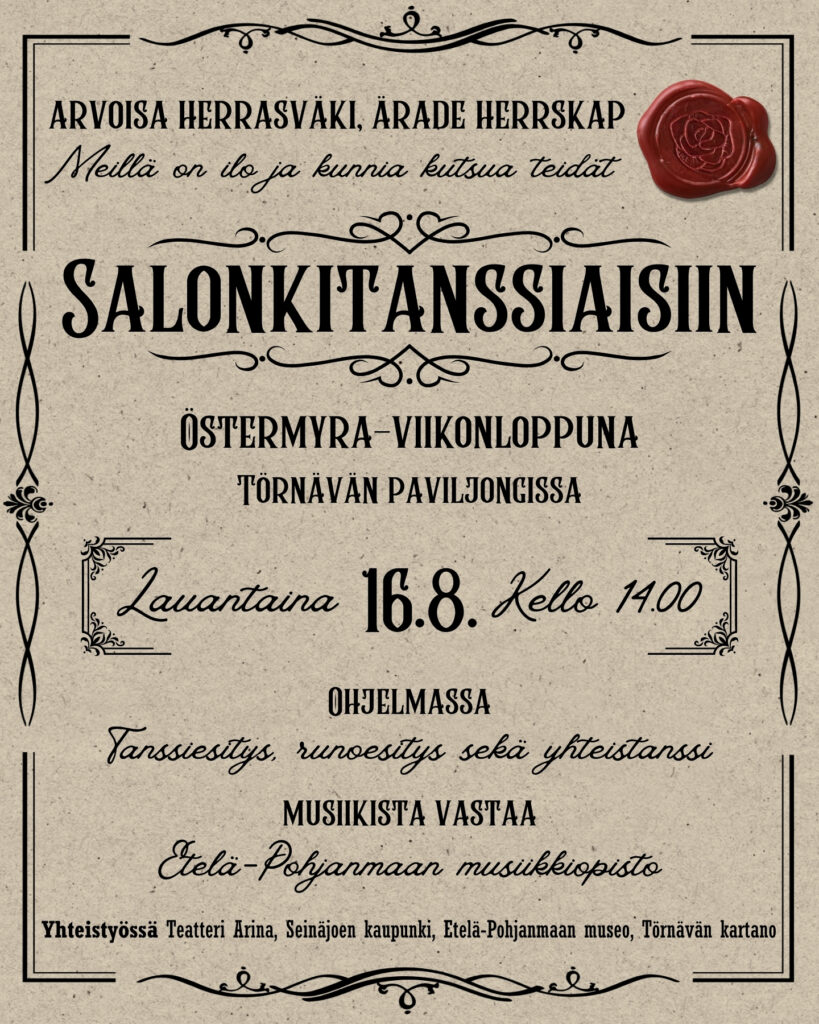 Kesän avaus Liinamaalla järjestetään perjantaina 7.6. Törnävän kartanoalueella. Luvassa kulttuuria, perinne-elämyksiä ja koko perheen ohjelmaa idyllisessä miljöössä! Kartanokahvila on auki tapahtumapäivänä. Seinäjoen kaupunginorkesterin kamarimusiikkikonsertti kartanon edustalla (huonolla säällä sisällä) klo 11-11:45, historiareitin avajaislähtölaukaus klo 12 kartanon edessä. Tilaisuus on avoinna kaikille!