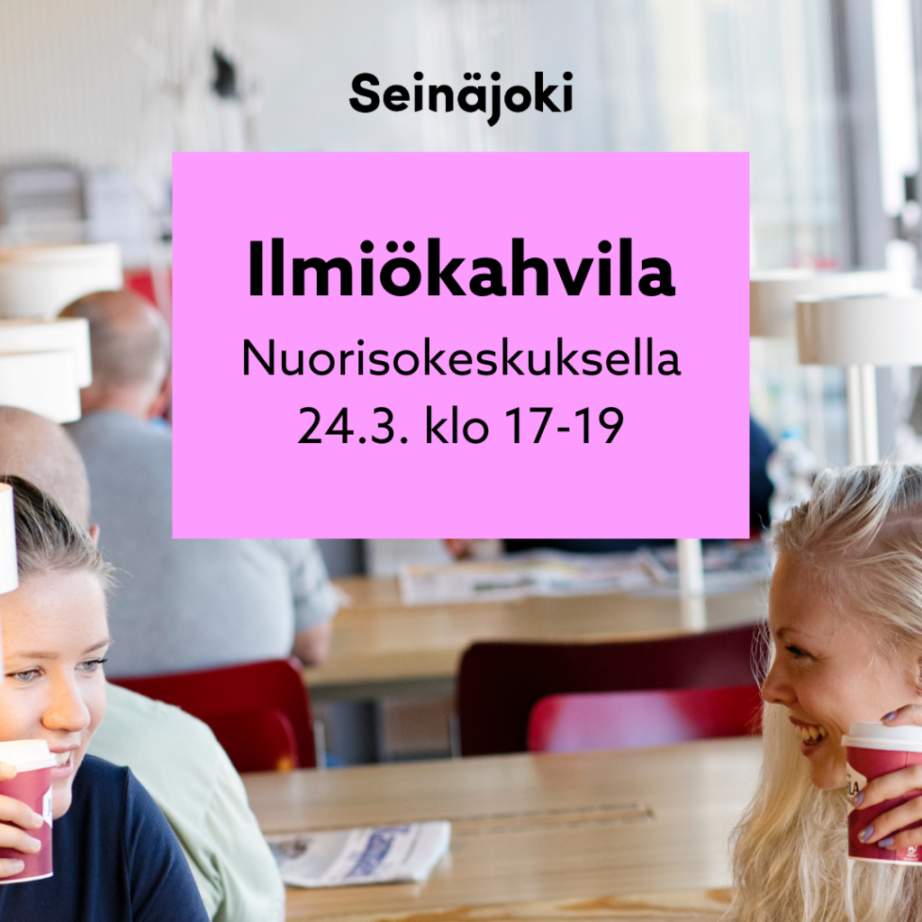 Ilmiökahvila on keskustelutilaisuus, jossa pureudutaan Seinäjoen alueella ajankohtaiseen ilmiöön, kuten päihteisiin, nikotiinituotteisiin tai pelaamiseen liittyviin teemoihin. Tilaisuudessa kuullaan lyhyitä asiantuntija-alustuksia ja käydään ohjattua keskustelua siitä, ketä ilmiö koskettaa ja millaisia näkökulmia ja osaamista osallistujilla on aiheesta. Tavoitteena on yhdessä pohtia rakentavia ratkaisuja ja kehittää toimintatapoja.