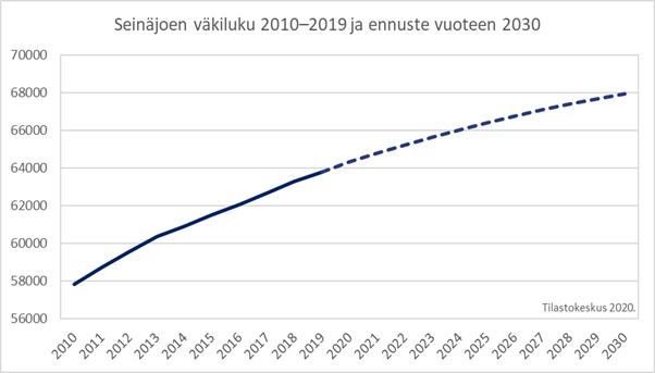 Tilastokeskuksen väestöennusteen mukaan Seinäjoen asukasluku kasvaa myös tulevina vuosina.