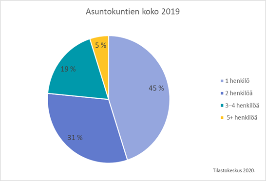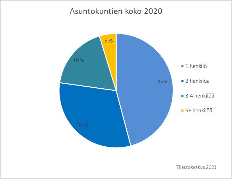Seinäjoella asutaan hieman väljemmin kuin Suomessa keskimäärin: asuntojen pinta-ala/hlö on Seinäjoella 42,8 m2 (koko maassa 41,7 m2).