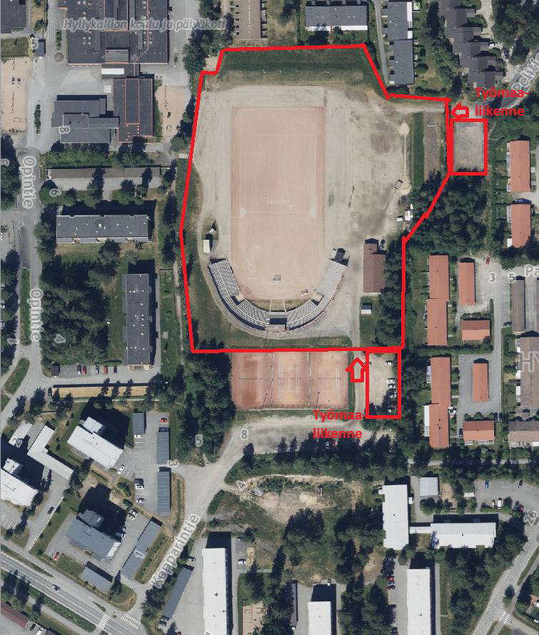 Tenniskenttätoiminta jatkuu normaalisti, kun kentät avataan pelikäyttöön. Paikoitus tenniskenttien eteläpuolelle. Hyvä huomioida alueella työkoneliikennöinti.