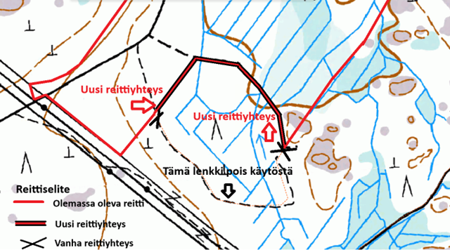 Seinäjoen kaupungin liikuntapalveluiden hallinnoiman kävely- ja maastopyöräilyreitin (8 km) eteläkärjen puolelle on reittiin tullut muutos metsätyömaa-alueen vuoksi. Muutoskohdassa on ohjaus uudelle reittiyhteydelle.