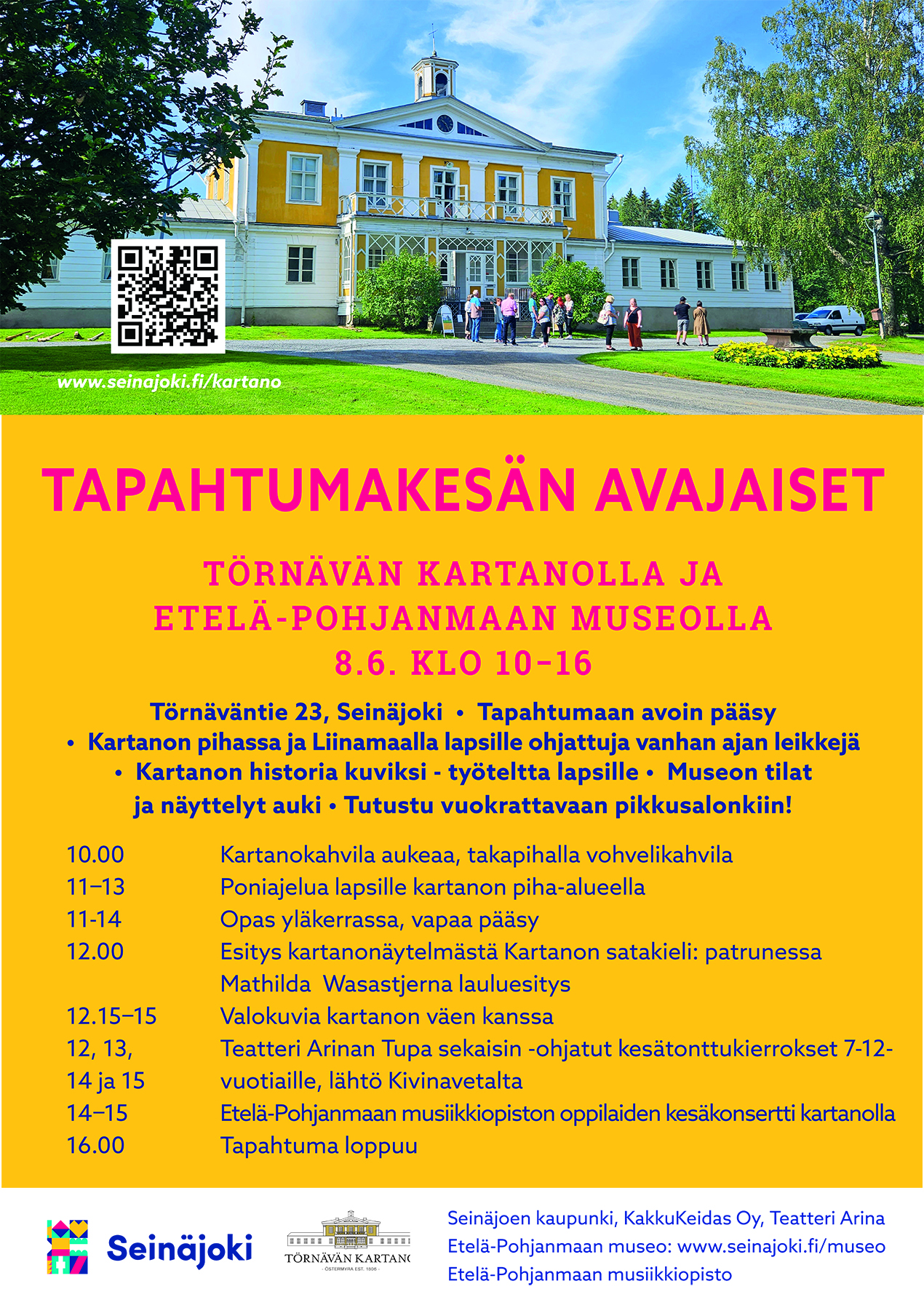Tapahtumakesän avajaisia vietetään 8.6. klo 10-16. Kartanon kesäkahvila on auki tapahtuman ajan ja takapihalla on vohvelikahvila. Kartanon ja Liinamaan pihoilla on ohjattuja vanhan leikkejä lapsille. Alueen museon rakennukset ja näyttelyt ovat auki koko päivän. Kartanolla voi tutustua uuteen pikkusalonkihuoneeseen.
