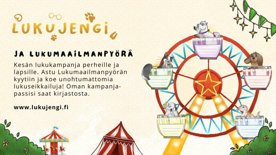 Lukujengi ja Lukumaailmanpyörä on perheille ja lapsille suunnattu kesälukukampanja. Siinä lainataan kirjoja ja kerätään Lukujengi-hahmoja kirjastosta saatavaan kampanjapassiin. Seinäjoen kirjastoissa kampanja-aika on 1.6.-31.8.2023. Sinä aikana passeja on jaossa kaikissa kirjaston toimipisteissä. Jokaisella kirjastokäynnillä passiin saa uuden hahmon.