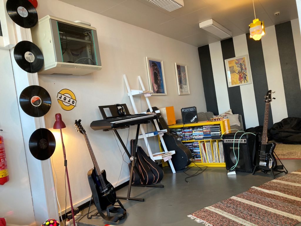 Jojosta löytyy pelejä ja soittimia yhteiseen hauskanpitoon, mutta myös kirjoja ja kutimia hiljaisempiin hetkiin. Kaikki toiminta on vapaaehtoista. Passaa siis mainiosti, jos haluatkin omassa rauhassa uppoutua sohvan uumeniin kirjan kanssa tai vaikka kuunnella musiikkia kahvikupposen kera!