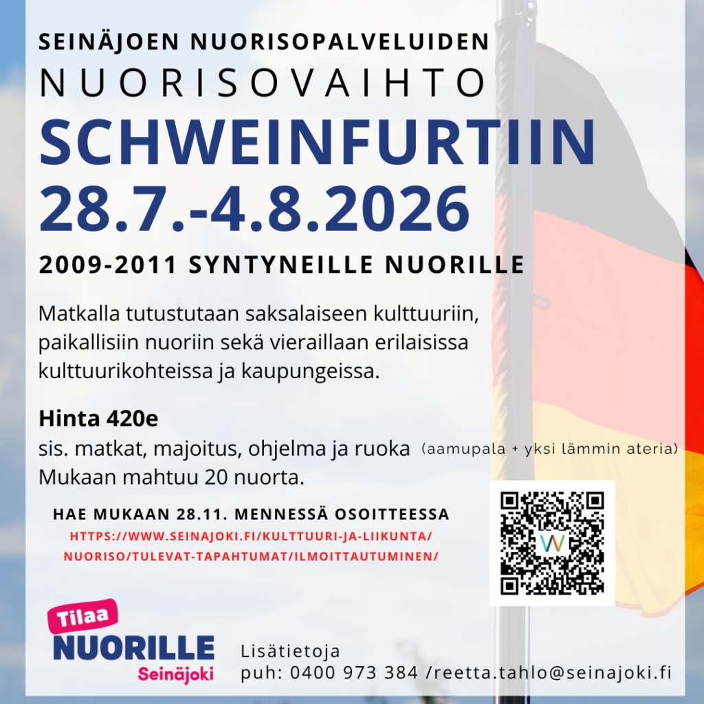 Vuonna 2026 lähdetään jälleen nuorisovaihtoon Saksan Schweinfurtiin! 🇩🇪