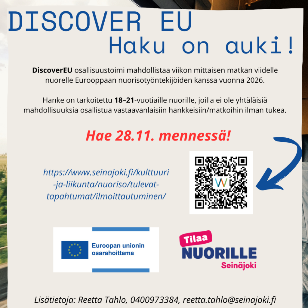 Mikä Discover Eu hanke? Käy lukemassa 4.11. Nuorisokeskuksella pidetyn infotilaisuuden diat. DiscoverEU infotilaisuus (powerpoint)