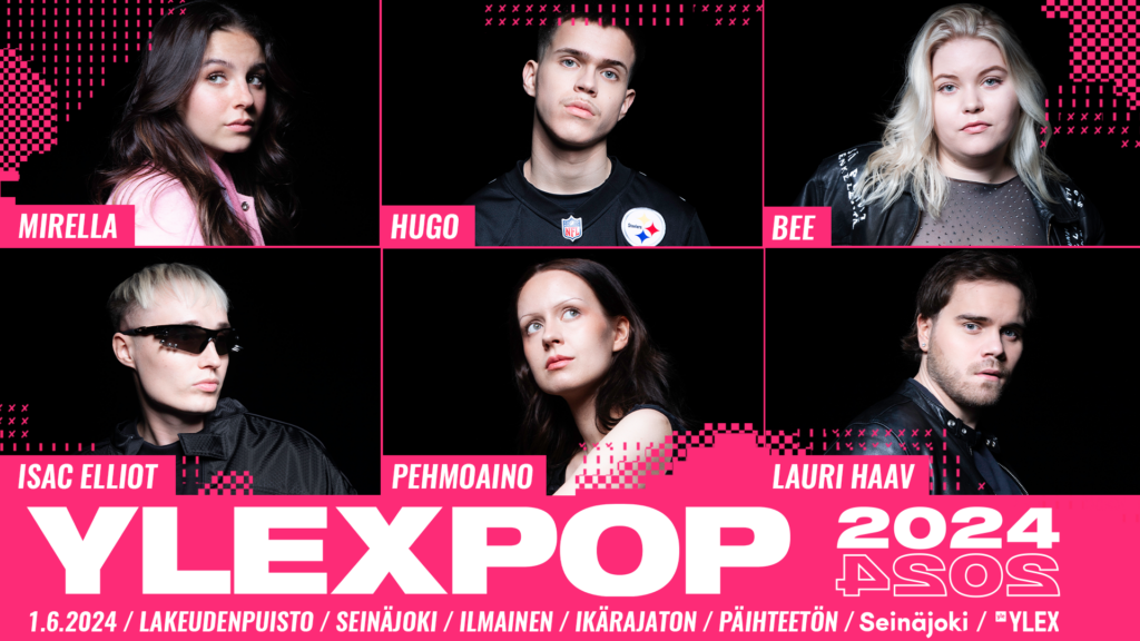 YleXPop järjestetään Lakeudenpuistossa 1.6. klo 16–23. Esiintyjät ovat Isac Elliot, Lauri Haav, Mirella, Pehmoaino, Hugo ja Bee.