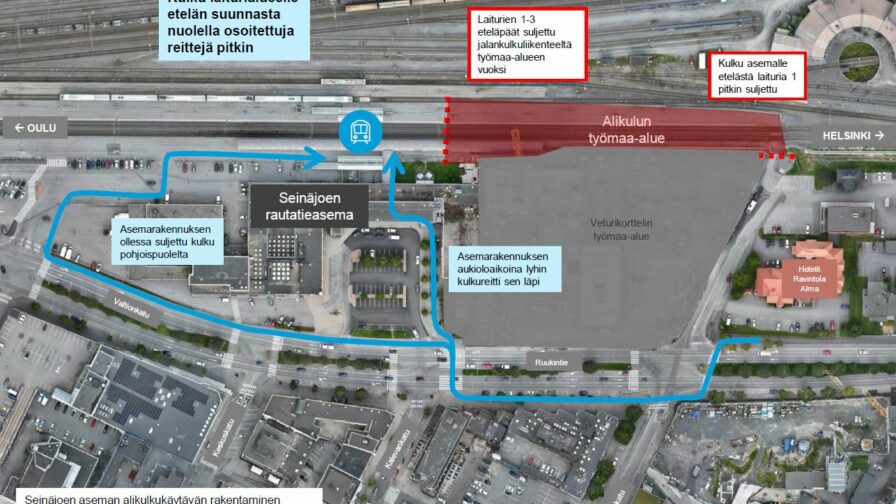 Seinäjoen aseman uuden alikäytävän rakentaminen on aloitettu ja se valmistuu marraskuussa 2024. Työn aikana laiturille kuljetaan jalan vain rautatieaseman ja pohjoispäädyn pysäköintialueen kautta.