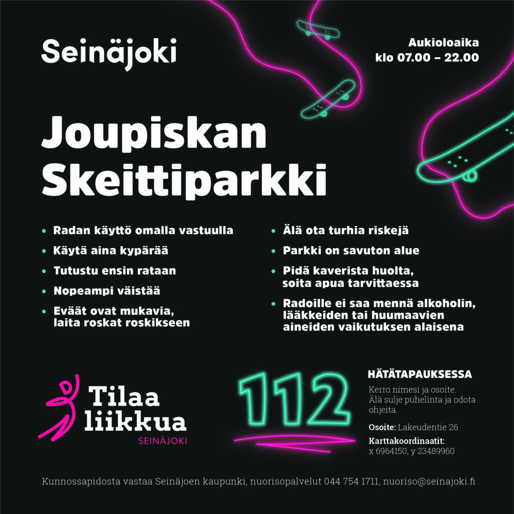 – Nuorisopalvelut vastaa parkin toiminnasta. Olemme laatineet parkille pelisäännöt, joita toivomme parkin käyttäjien noudattavan, kertoo nuorisotoimenjohtaja Pekka Hautamäki.