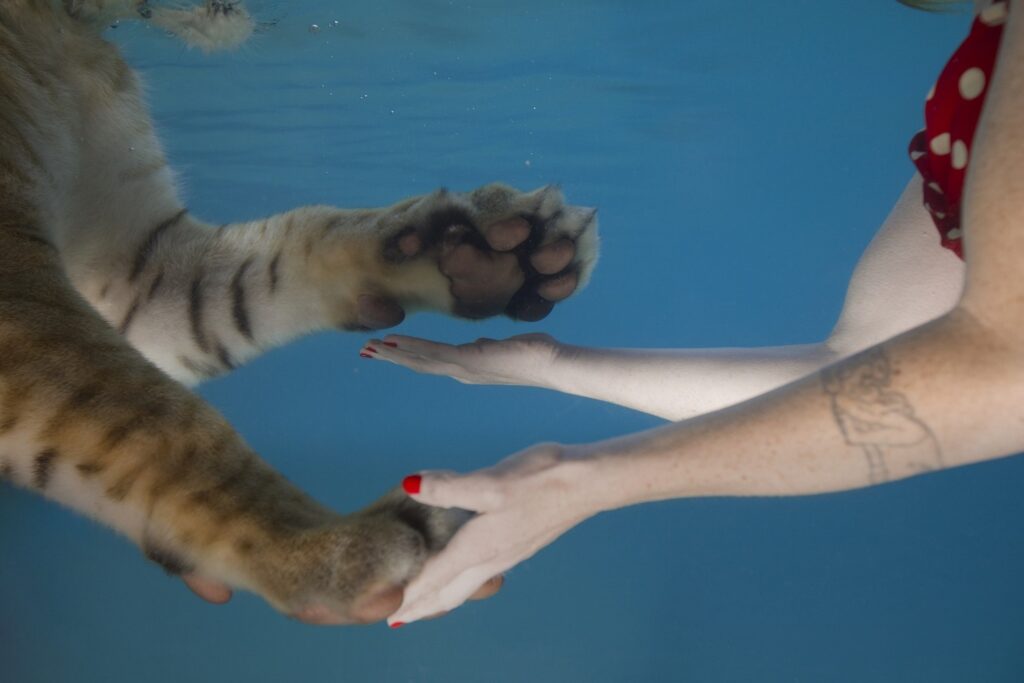 Näyttelyn teokset sijoittuvat avarille öljynporauskentille ja intiimeille takapihoille. Teoksessa (un)common intimacy (2018) Segall ui yhdessä yksityisreservaattien villieläinten kanssa. Human Energy (2023) on monikanavainen videoinstallaatio, jossa Segall ottaa haltuunsa öljypumpun ja kiipeää sen päälle. Näyttelyn visuaalisesti hätkähdyttävät teokset tulevat iholle ja tuntuvat kehossa.