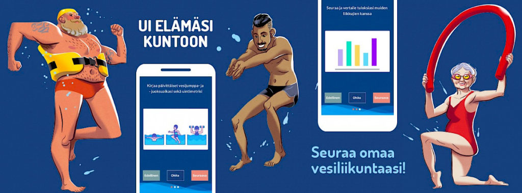 Seinäjoen liikuntapalvelut kannustaa uimahallin asiakkaita käyttämään Ui elämäsi kuntoon -sovellusta.