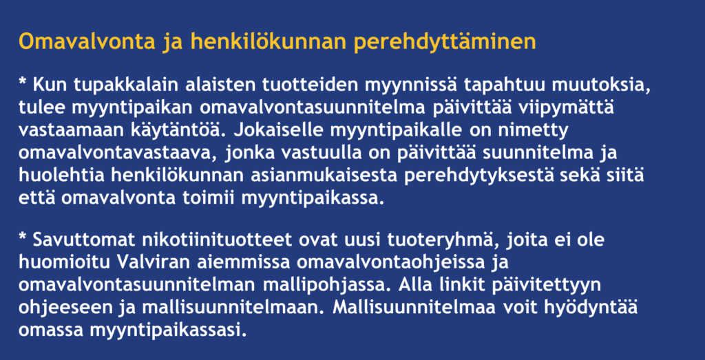 Ohjeistus tupakkalain mukaisten tuotteiden omavalvontaan